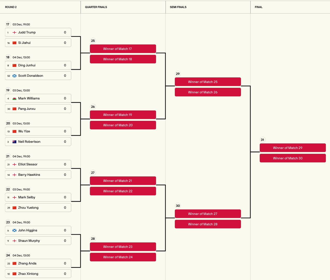 Мэргэжлийн снукер биллиардын "UK Championship" тэмцээний шөвгийн 16 тамирчин бүрдлээ.