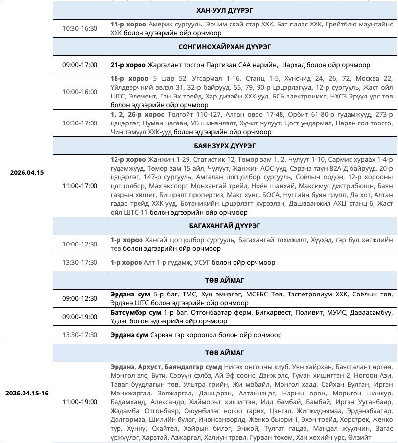 Өнөөдөр дөрвөн дүүрэг нэг аймагт цахилгаан хязгаарлахаар төлөвлөжээ.